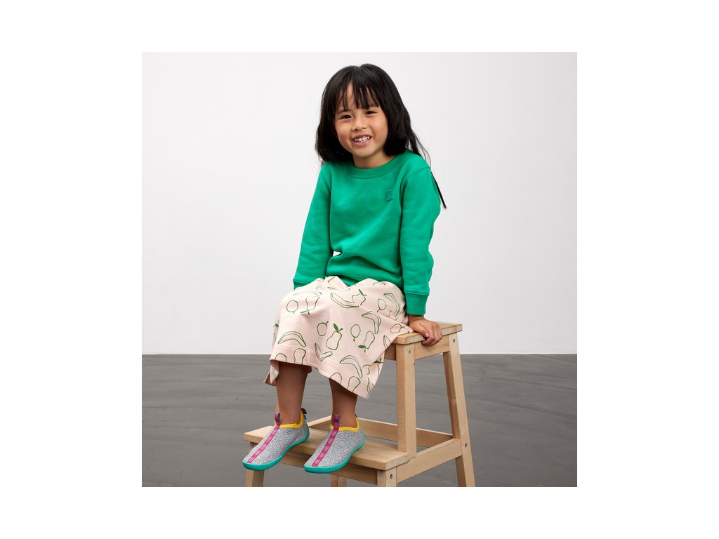 Papuče vyrobené zo 100% polyesteru s certifikátom bluesign®. Stielka je vyrobená z peny z rias (30%) od spoločnosti BLOOM™, ktorá vyvinula prvú EVA penu na svete s riasami pre obuvnícky priemysel. Sú extrémne ľahké a ohybné. Topánočky sa ľahko obúvajú vďaka dlhšiemu popruhu na päte. Veľmi rýchlo schnú, preto sa dajú použiť aj ako topánky ku vode.